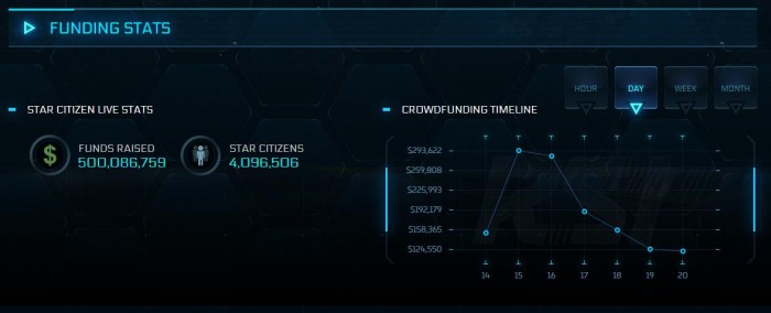 据tweaktown网站今日(9月21日)消息,科幻题材MMO游戏《星际公民》众筹资金已超过5亿美元,RSI网站确切数据,众筹资金为500086759美元,参与众筹玩家数为4096506人。