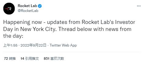 Rocket Lab在该公司的投资者日期间与投资者和公众分享了这些消息。虽然活动的现场直播遇到了技术故障,但Rocket Lab在活动的同时在一系列推文中分享了所有的更新信息。