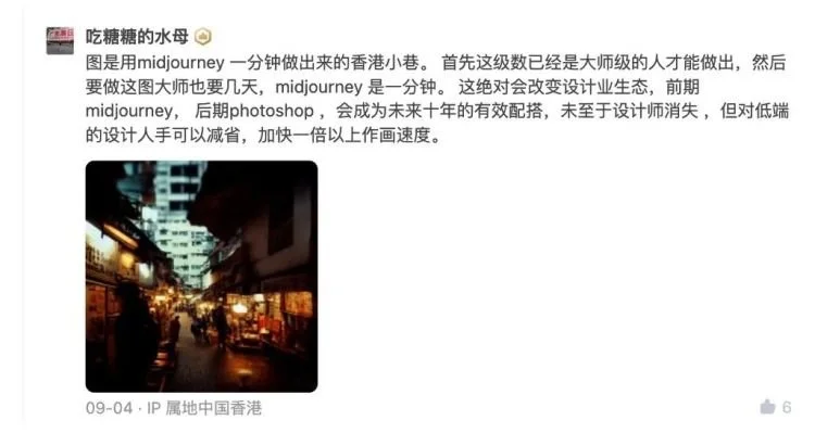 而对于一些更专业的艺术创作者来说,Midjourney将大大提高设计和创作的效率,甚至成为一个灵感激发器。很多创作者可以基于AI生成的底图来做二次创作,或者从中提取创作的元素,缩短过去需要大量思考和准备的时间,从而整体提高艺术创作行业的效率。