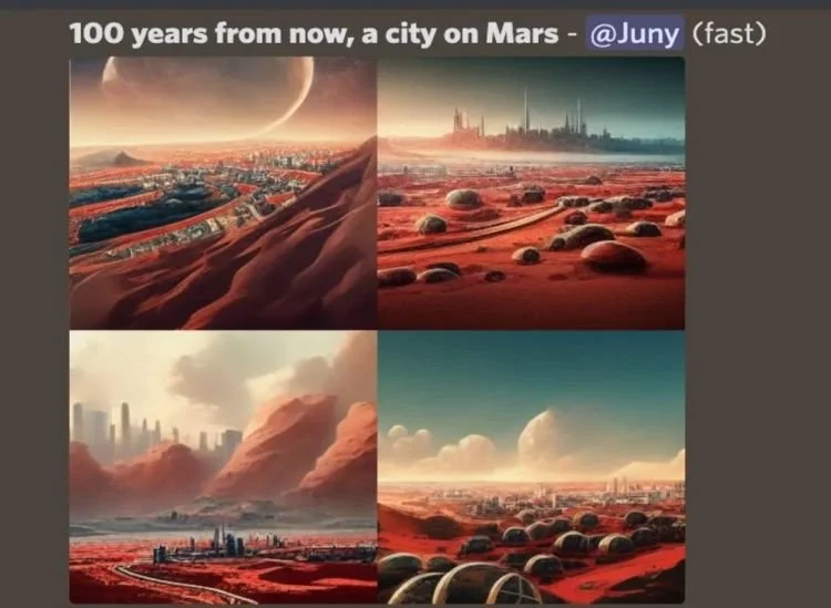下方的这张图是一张关于100年后火星上城市的主题画作。 这并不是哪位插画师的杰作,而正是出自于硅星人这个没有任何美术背景的绘画小白。这幅作品从构思到完成创作,整个过程仅仅只用了一分钟而已。