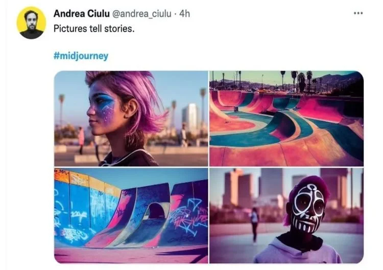 此外,Midjourney图片的艺术感和可用性很高。目前其他生成工具经常会出现抽象的形状和不知所云的图案,但Midjourney产出的图片几乎每一张都可以拿来即用。