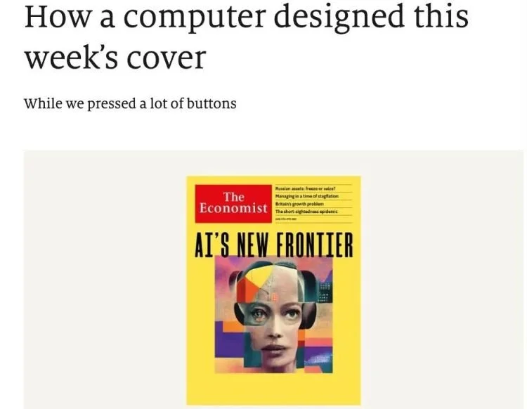 实际上,Midjourney最近除了获得了专业奖项之外,在生活中也已经开始被很多机构用于了实际的工作之中。比如经济学人近期就用Midjourney生成的图片做了杂志封面,一些作家开始使用Midjourney来为自己的文章和小说自动生成插画等。