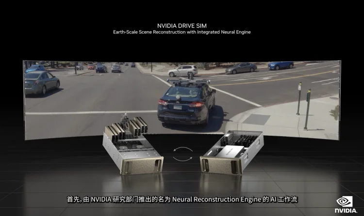 一项名为Neural Reconstruction Engine(神经再造引擎)的AI工作流为Drive Sim提供了新支持。通常情况下,为自动驾驶创建虚拟训练场景费时费力,且场景十分有限,并不能达到充分训练的目的。但通过这项新技术,只需上路采集一次信息,便可根据传感器数据对路上的人、车、物等信息进行采集,并在几分钟内重建完整的数字孪生。