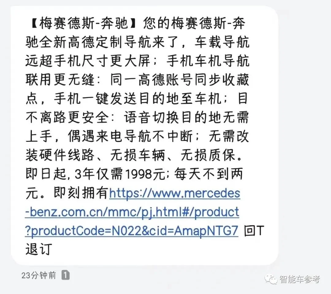 除了推送广告,更奇葩的操作是,奔驰为用户提供了“付费1998元解锁高德地图3年使用权”这样的服务。