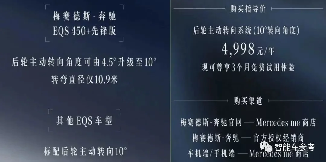 无独有偶,奔驰EQS还出了个可按年付费解锁更大角度后轮转向的服务。