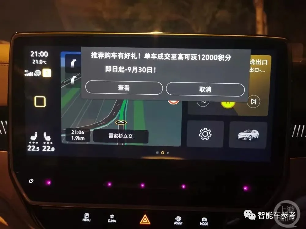 没想到,智能车机竟然在驾驶状态的中控屏上推送起广告。行至立交桥处,导航页面突然弹出广告:“推荐购车有好礼!单车成交至高可获12000积分……”遮挡了大片屏幕。想不到吧,这是百年车企大众ID.6的最新手段。更气人的是,客服还给出了这样的回应:今后还有,频率不定。