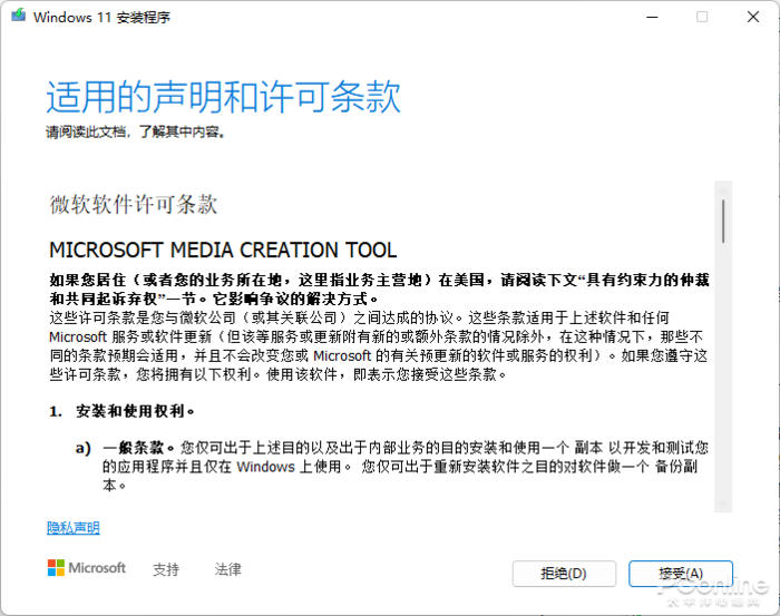 制作步骤:同样的,准备一个大于8G的U盘,然后下边的链接中下载“创建Windows 11安装”工具,然后运行(需联网操作),接着按下边的步骤走,就能制作一个纯净版且最新版的Windows 11安装U盘了。
