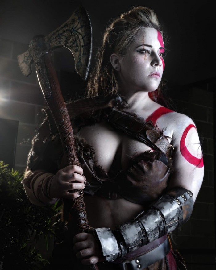 近日,澳洲PS官方社交媒体发布了一张由粉丝Lsorrow68出的女奎托斯COS图,完美还原了利维坦之斧和奎托斯的服装配饰。