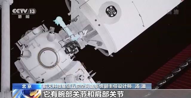 航天科技集团五院空间站系统副主任设计师 汤溢:转位机构可以看作是一个小型的机械臂,它有腕部关节和肩部关节两个关节来进行转动,来操纵舱体转位到相应的对接口上。