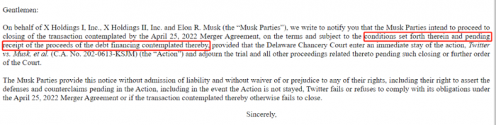 马斯克今天发给 SEC 和 Twitter 董事会的信里,主要内容虽然只有两句话,却(可能)包含了巨大的信息量。