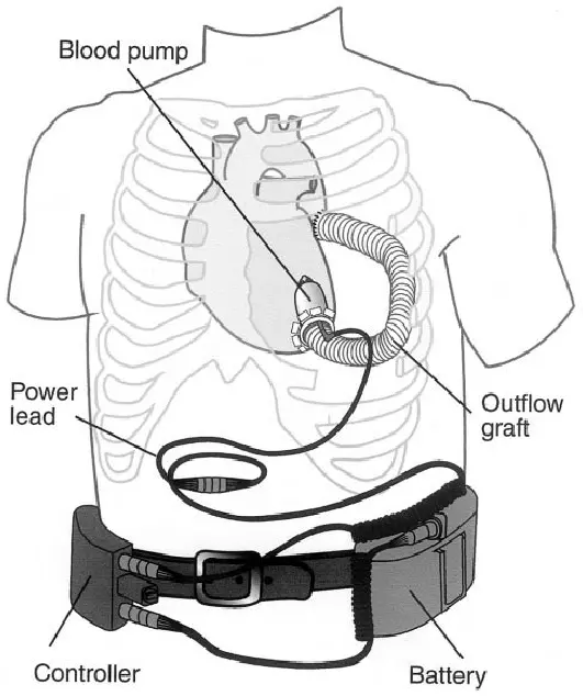 在他的心脏里,有一个拇指大小的电子泵,昼夜不停地把他左心室里的血液抽空,然后送进主动脉,如此循环。