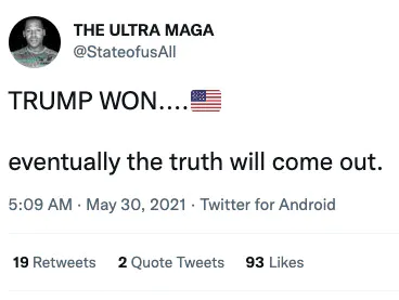 在最常见的词汇列表中有“特朗普(Trump)”、“选举(election)”和“拜登(Biden)”等词汇。许多包含这些术语的笔记涉及唐纳德·特朗普赢得2020年大选的说法,或反过来说,乔·拜登输了。虽然普遍存在,但由于有大量证据表明选举舞弊现象普遍存在,像这样的说法很容易进行事实核查。