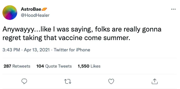 在这些说明中,随着公众对该大流行的理解发生变化,通常被检查的事实类型也在不断变化。2021年的推文涉及错误的叙述,其称安东尼·福奇博士在创造新冠病毒方面有某种个人作用或在疫苗上市后对其安全性和有效性产生怀疑。