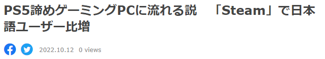 •日本游戏业界专家,东洋证券的专业分析师安田秀树还表示,根据对Steam数据的调查分析,Steam用户中日本语用户玩家数量正在不断攀升,相当一部分都是放弃PS5而来,而且自己身边不少朋友都是这种状态实例。