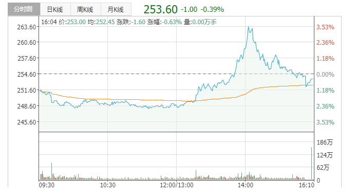 根据披露此次最高回购价263.80港币,最低回购价248.20港币。今日回购的金额是往日3亿多港元的近两倍。