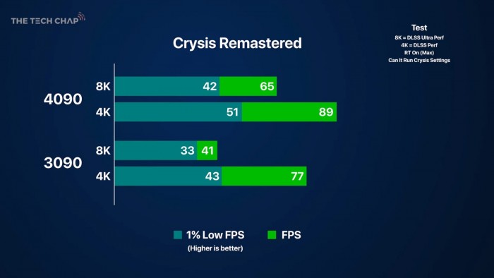《孤岛危机1:复刻版》:RTX 4090,平均65FPS,RTX 3090,平均41FPS