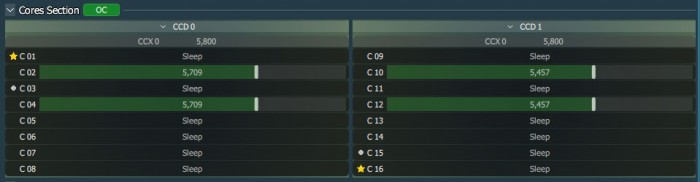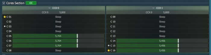 比如,全核满载的时候,其中一个CCD的8个核心都能跑到5.4GHz,另一个CCD的8个核心则是5.3GHz。