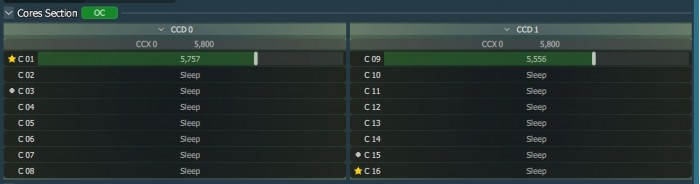 单核最高频率的话,一个CCD能达到5.75GHz,另一个则只有5.5GHz,差了足足250MHz。