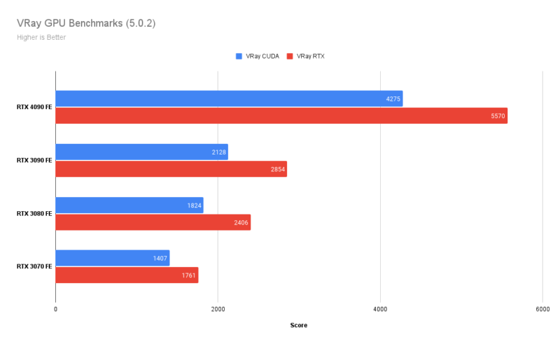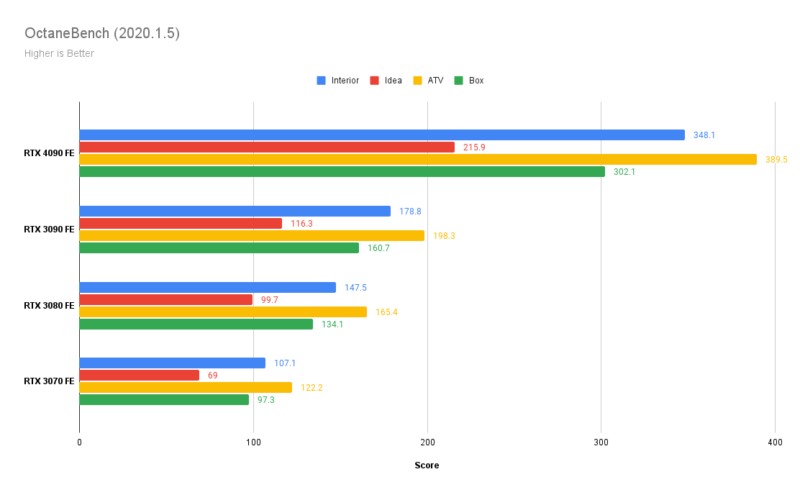 详细的测试结果可以看下面的成绩表,简单来说RTX 3090在部分生产力中提升很大,比如Blender渲染中比RTX 30990显卡性能翻倍了,效率大增。