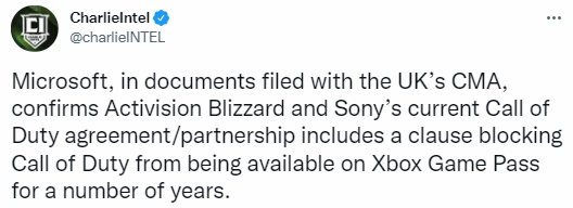 根据知名爆料者CharlieIntel透露,微软在提交给英国监管机构CMA的文件中确认,动视暴雪和索尼之间存在一项协议,使该游戏在数年内无法登陆XGP。