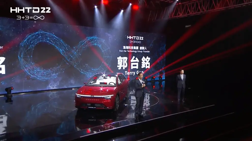今年的鸿海科技日依惯例选在鸿海创办人郭台铭生日当天。去年,郭台铭驾驶Model E现身。今年,他在“one more thing”环节驾驶Model B进场。