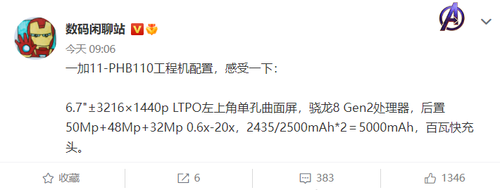 今天,数码闲聊站就带来了其中一款性能旗舰——一加11的工程机详细参数。