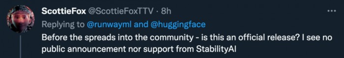这就让一直以为 Stability AI 是 Stable Diffusion 所有者的网友看不懂了:“这是官方发布吗?我怎么在 Stability AI 的官方渠道没有看到任何公开声明呢?”