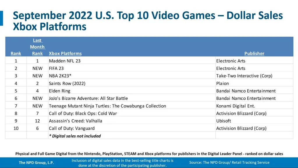 在游戏内容支出方面,9 月报告指出显示为 34 亿美元,与去年同期相比下降了 7%。内容表现受到非移动视频游戏订阅支出两位数百分比增长的推动,这被其他内容领域的下降所抵消。本月的畅销游戏是《FIFA 23》、《JoJo’s Bizarre Adventure: All Star Battle》、《The Last of Us: Part I》、《NBA 2K23》、《Splatoon 3》、《Teenage Mutant Ninja Turtles: The Cowabunga Collection》。