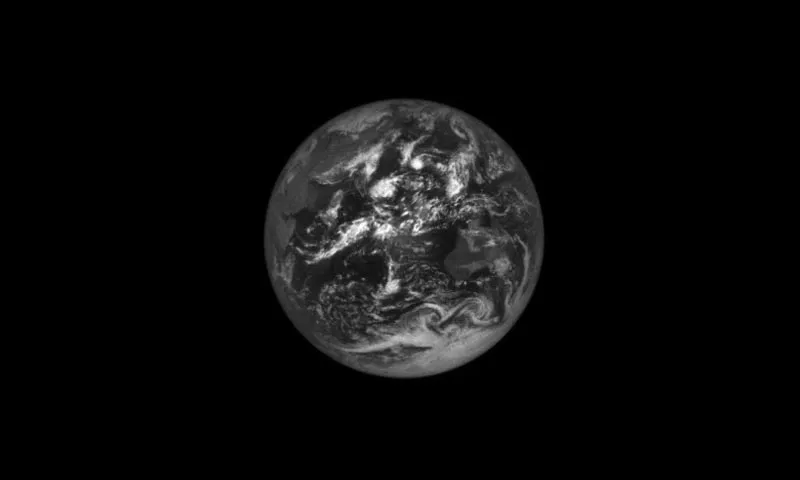 美国宇航局的"露西"号于10月16日近距离飞过地球,作为重力辅助演习的一部分。在最接近地球前不久,该航天器拍摄了地球和月球的图像。2022年10月15日,在380,000英里(620,000公里)的距离上,美国宇航局的露西号航天器拍摄了这张地球的图像(已被裁剪),作为仪器校准工作序列的一部分。