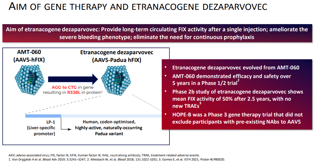 "血友病的基因疗法已经有二十多年的历史了。尽管在治疗血友病方面取得了进展,但预防和治疗出血事件会对个人的生活质量产生不利影响,"FDA生物制品评估和研究中心主任Peter Marks博士在一份声明中说。"今天FDA的批准为血友病B患者提供了一个新的治疗选择,代表着为那些经历与这种血友病形式相关的能够承担高额支出的病人开发创新疗法的重要进展"。