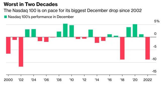 纳斯达克100指数或创下20年来最大12月跌幅