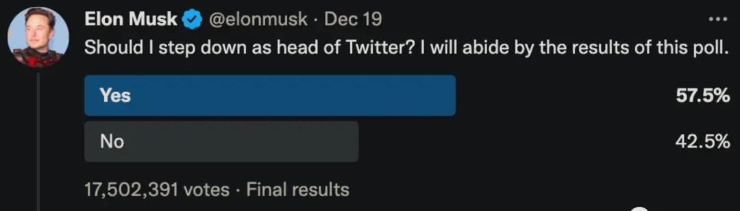 就在几天前,马斯克发起的“我是否该卸任TwitterCEO”投票,更是获得了57.5%的赞成率。