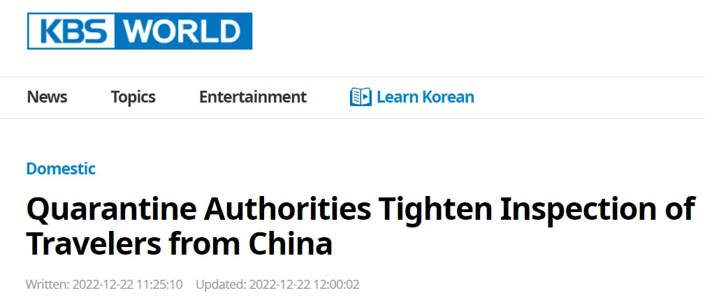 韩国广播公司:当局强化对中国旅客的检疫检查