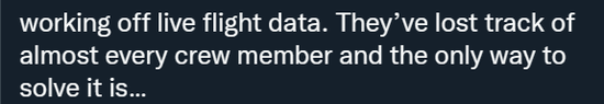 具体来说,一般航空公司需要看一下自家的实时系统或者 FAA 的公开数据,就可以知道自家的飞行员和空乘的当前所在地。