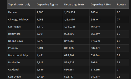 ——硅谷朋友们在 SJC 看到的“盛况”,实际上只是九牛一毛而已。毕竟在西南航空全美流量最大的机场当中,SJC 连前十都排不上呢。