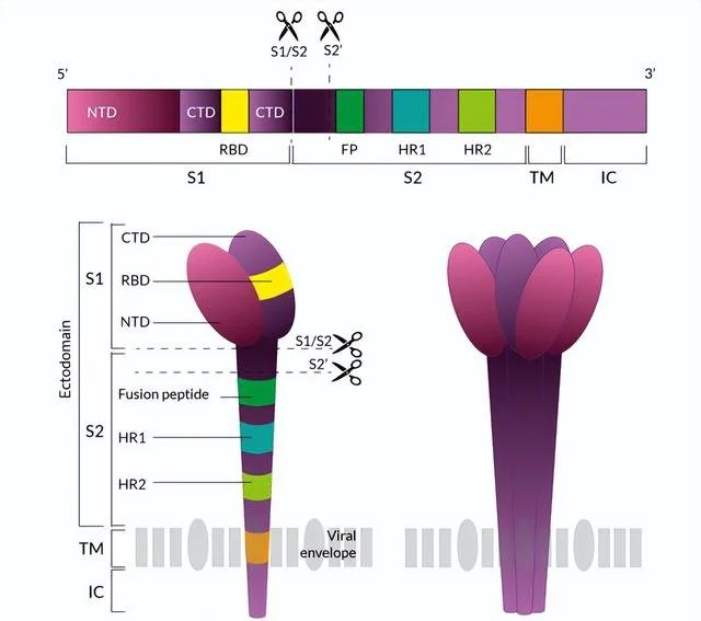 刺突 (S) 是一种在SARS-CoV-2表面表达的结构糖蛋白,是病毒宿主和组织嗜性的关键决定因素。SARS-CoV-2 S在ACE2受体结合后介导病毒进入靶细胞,因此是潜在的治疗药物靶点