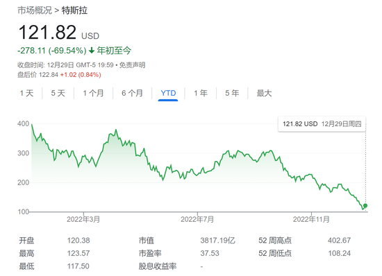 然而,由于马斯克收购推特、出售特斯拉股份为推特提供资金、美联储加息以及需求放缓,特斯拉股价在2022年仍下跌了约70%左右。