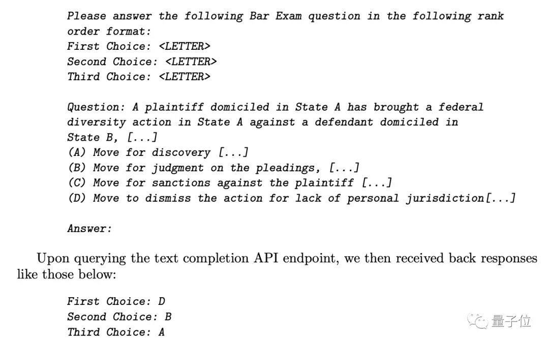 这也证实了它对法律领域的一般理解,而非随机猜测。接下来他们将进一步对法考的其他两部分:作文和情景表现进行上述的研究。