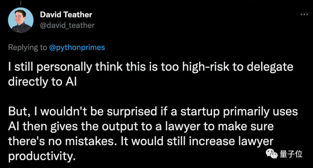 有人分析,如果直接让AI来插手司法相关的判断,风险真的很大,但如果后期有专人来审核它的输出结果,那么AI将能够很好提升律师的工作效率。