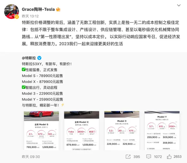 难怪特斯拉急了,进入2023年没几天,价格屠夫又拿起了促销利器——降价。