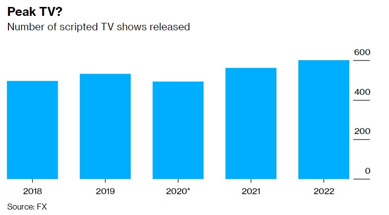 迪士尼(DIS.US)FX内容部门董事长John Landgraf表示,好莱坞削减开支的新时代可能最终会影响到电视节目的制作数量。去年,该行业发布了599部面向成人的剧本电视节目,比2021年增长了7%。FX的数据显示,尽管去年的剧本电视节目产量创下了纪录,但下半年产量下降了约2%。Landgraf表示,这可能是剧本电视节目产量已经达到顶峰的迹象。