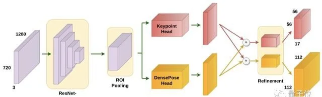 该架构灵感就来自Facebook已经开源的人体姿势实时识别系统DensePose。DensePose入选了2018年CVPR的Oral环节,主要是把2D图像转换成3D人体模型。