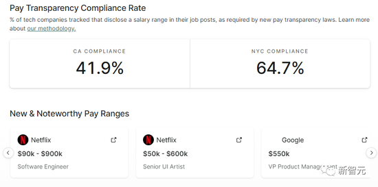 法律一经实行,一个新网站comprehensive.io也悄然上线,该网站汇总了700家顶尖科技公司和初创企业的薪酬范围,每天爬取这些雇主的招聘网站,并对数据进行更新。