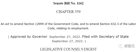 加州参议院第1162号法案于去年9月通过,并于今年1月1日生效,主要包含两个关键部分。