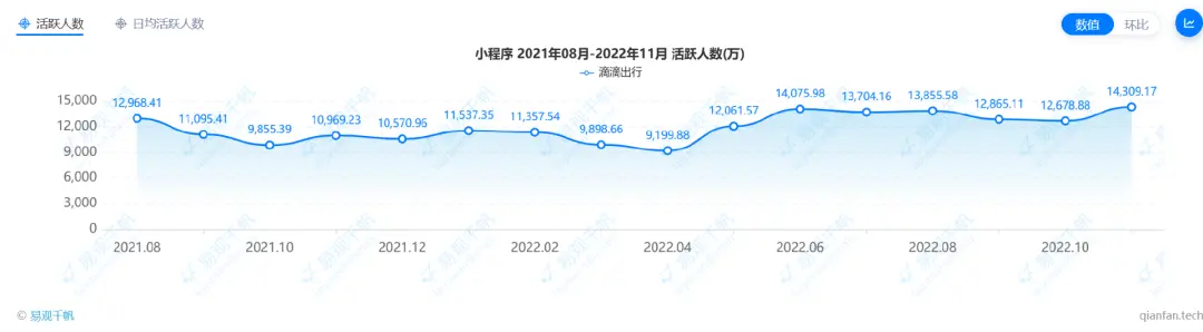 图/滴滴出行小程序活跃人数数据 来源/易观千帆 燃次元截图