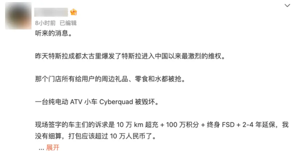 所以我们就看到了据说是 “ 特斯拉进入中国以来最激烈的维权 ” 。