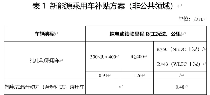 咱看看去年的补贴方案,纯电车型的补贴金额最多是 1.26 万,插电混动车型的补贴是 0.48 万。相较于之前 10 来万的补贴,现在给的钱已经降到原来的十分之一了。