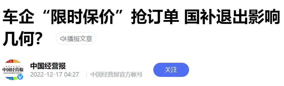 然后各家车企就纷纷推出“ 限时保价 ” 政策,意思就是你只要赶在 12 月 31 日前下单,即使是 2023 年提车,还是这个价格。