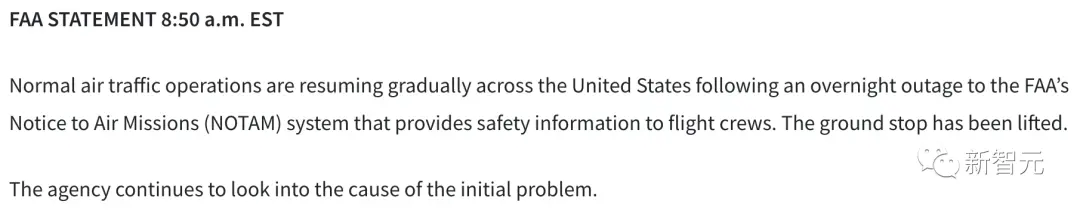 经过通宵排查,FAA在美东时间上午8点50表示,目前美国各地的航班正在逐步恢复,停飞已被解除。