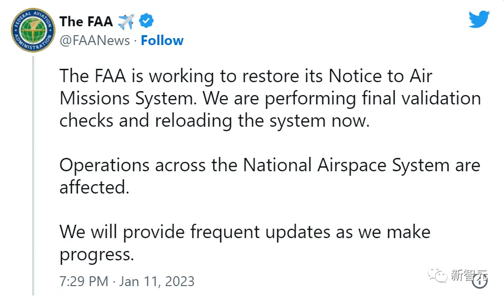 1月11日周三,美国东部时间凌晨2点左右,飞行任务通知系统NOTAM(Notice to Air Mission Systems)突然下线。